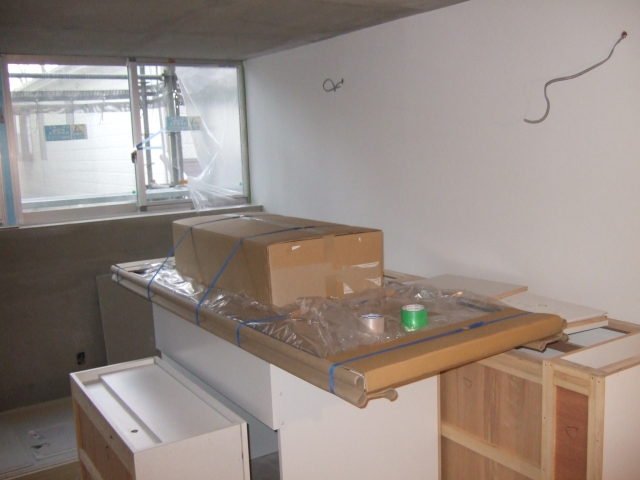 我が家も所狭しと作りつけ家具が搬入されております。