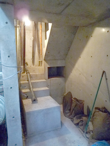 1階(玄関)の階段やらの細かい箇所の打設も終わっています。
