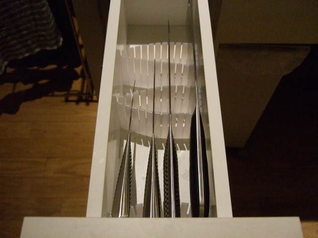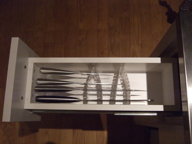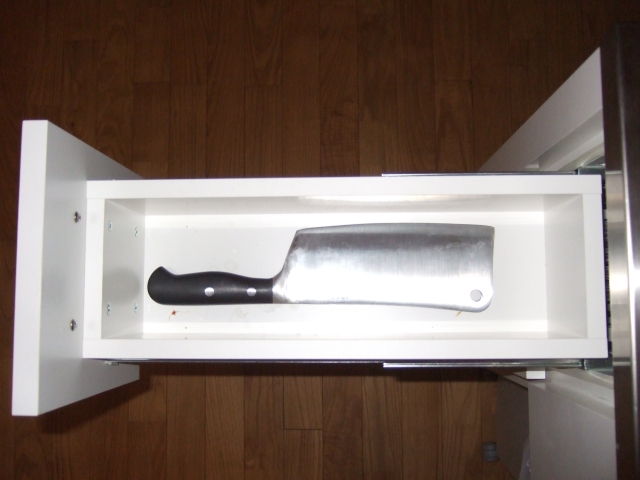 なのでカウンター収納引出しの一つを包丁入れにすべく