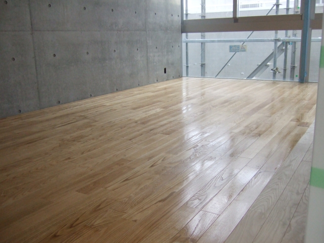 フローリングはクリア塗装を2度塗りします。